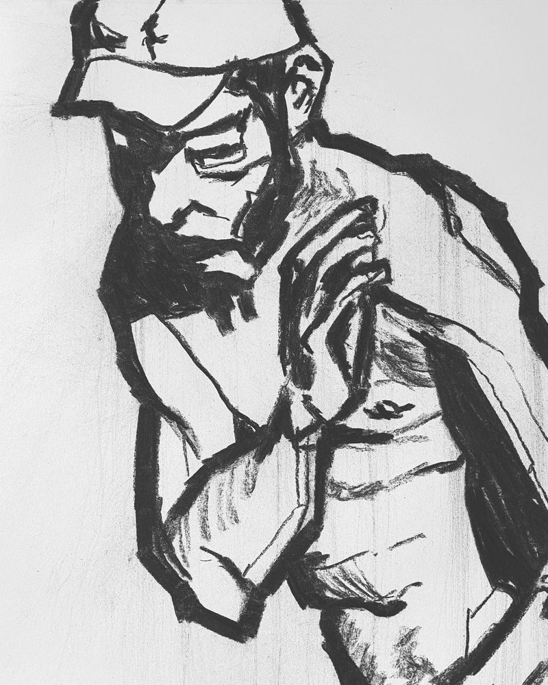 Bei dieser Serie von Kohlezeichnungen war die Übersetzung von Erinnerung auf das Körperliche, Figurative sehr unmittelbar und direkt, für einmal ist Sprache komplett aus dem Bild, zumindest in Form sprachlicher Zeichen. Sprache beziehungsweise 'Zeichen' sind aber natürlich auch im Gestus. Die Serie steht ganz im 'Zeichen' von Erinnerung, die vor dem Spracherwerb, vor der Möglichkeit, Gefühle beziehungsweise Umstände mittels sprachlicher Zeichen zu abstrahieren, geprägt hat und bis in ein der sprachlichen Abstraktion mächtiges Alters wirkt.
